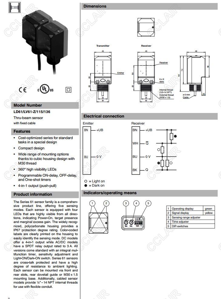 LD61/LV61-Z/115/136,對(duì)射型傳感器