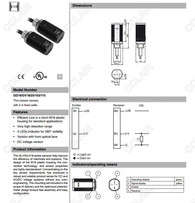 GD18/GV18/25/103/115,對射型傳感器