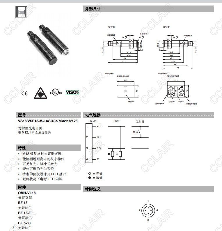 VS18/VSE18-M-LAS/32/40a/76a/82b/118,VS18/VSE18-M-LAS/40a/76a/118/128,對射型傳感器