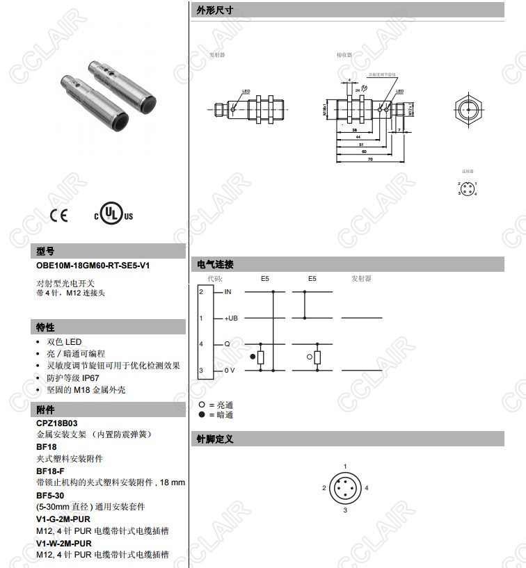 OBE10M-18GM60-RT-SE5-V1,對射型傳感器