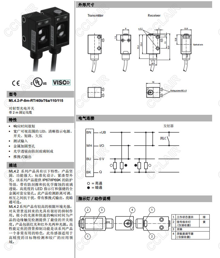 ML4.2-P-8m-RT/40b/76a/110/115,對(duì)射型傳感器