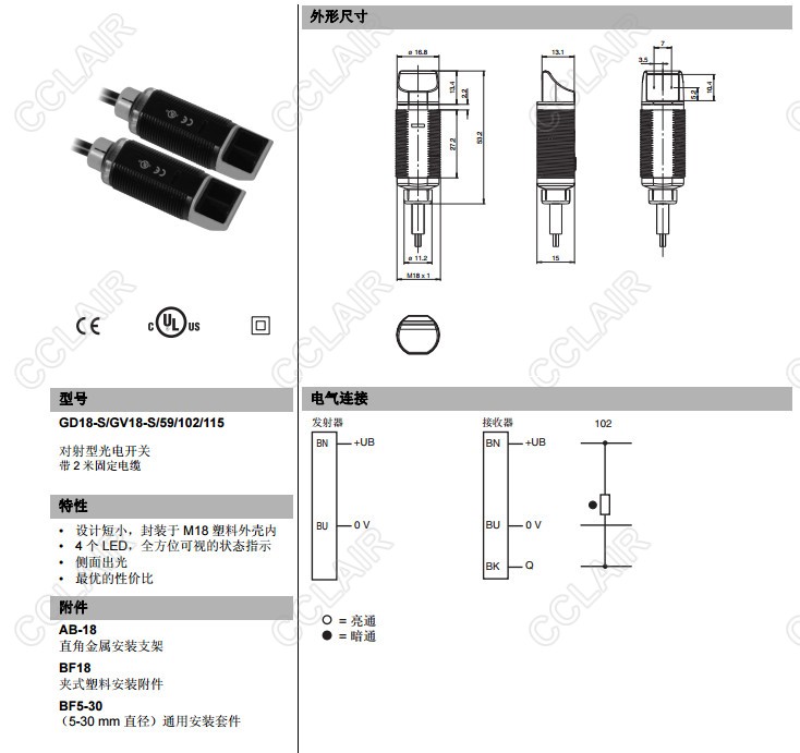 GD18-S/GV18-S/59/102/115,對(duì)射型傳感器