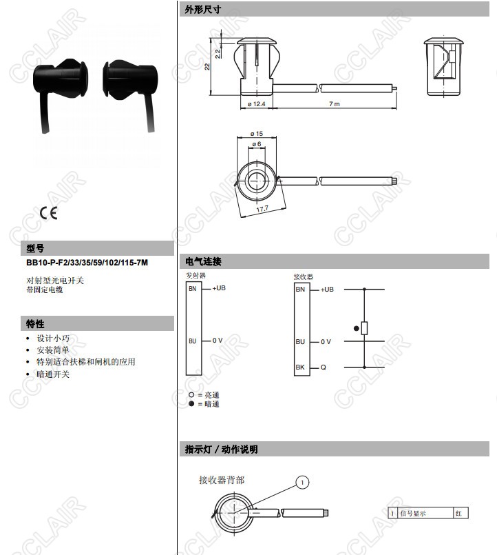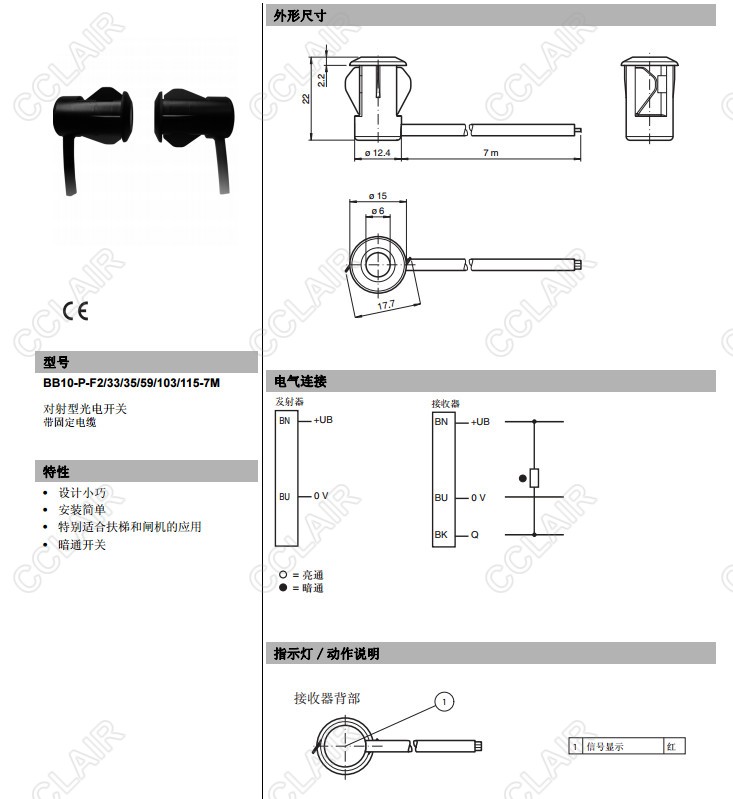 BB10-P-F2/33/35/59/102/115-7m,BB10-P-F2/33/35/59/103/115-7m,對射型傳感器