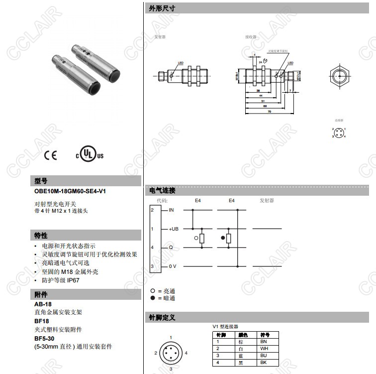 OBE10M-18GM60-SE4-V1,對射型傳感器
