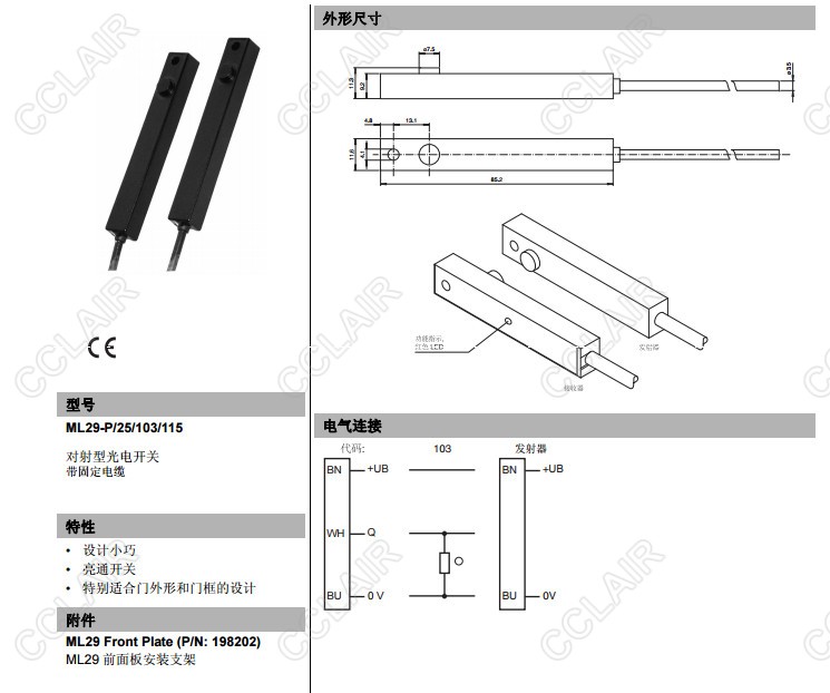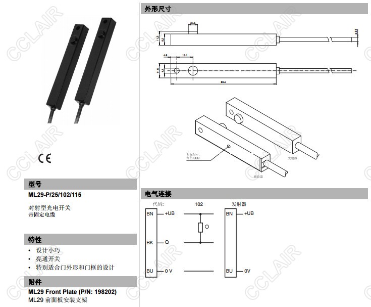 ML29-P/25/102/115,ML29-P/25/103/115,對(duì)射型傳感器