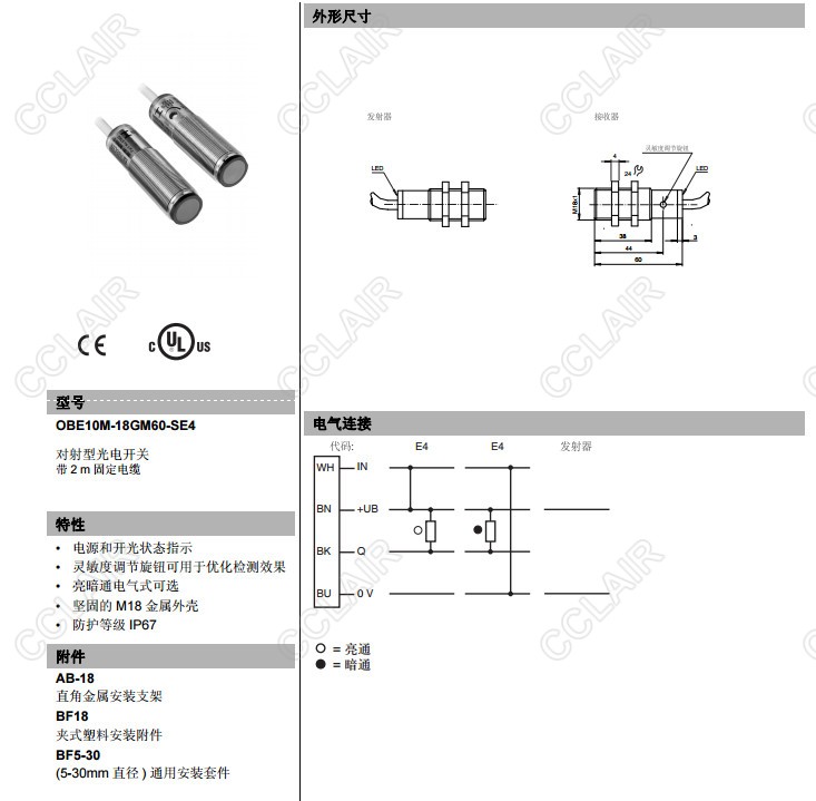 OBE10M-18GM60-SE4,對(duì)射型傳感器