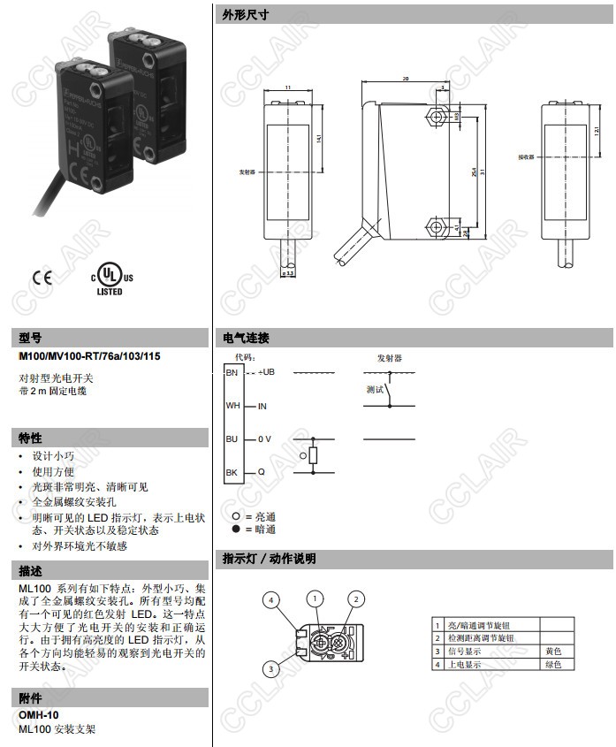 M100/MV100-RT/76a/103/115,對射型傳感器