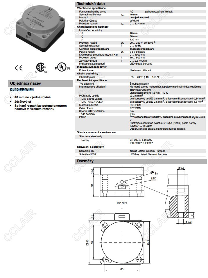 CJ40-FP-W-P4,電容式接近開(kāi)關(guān)