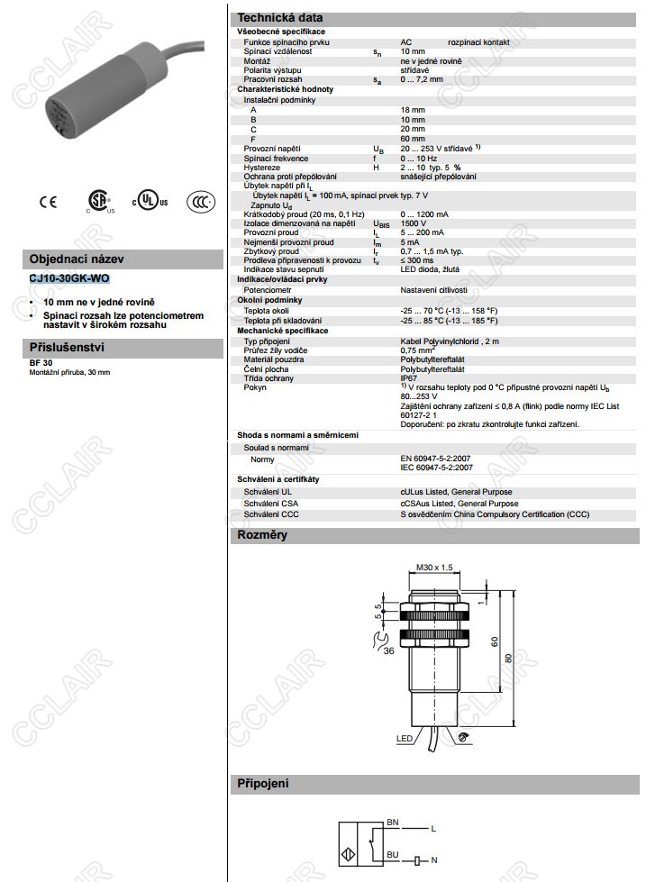 CJ10-30GK-WO,電容式接近開關(guān)