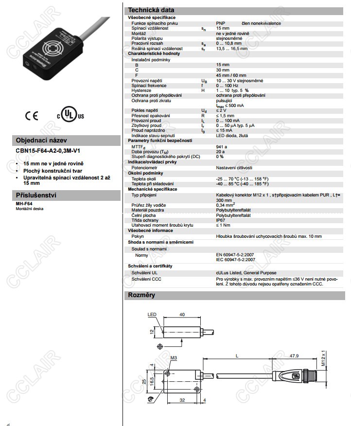 CBN15-F64-A2-0,3M-V1,電容式接近開關(guān)