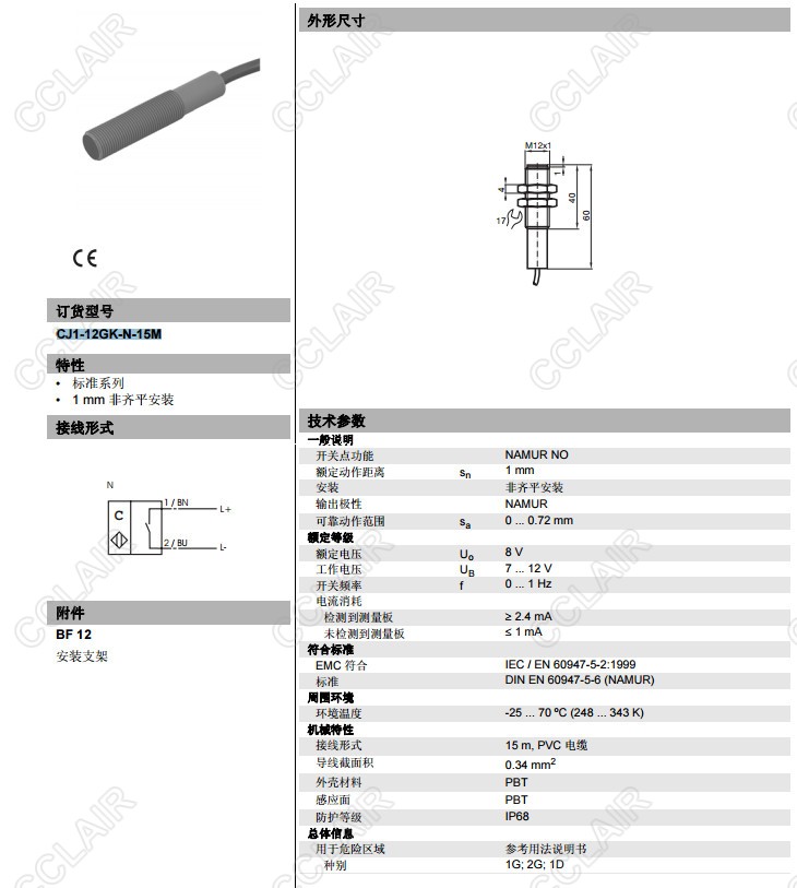 CJ1-12GK-N-15M,電容式接近開(kāi)關(guān)