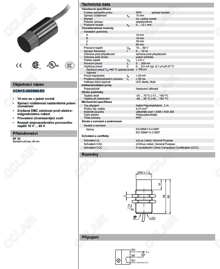 CCN15-30GS60-E0,電容式接近開(kāi)關(guān)