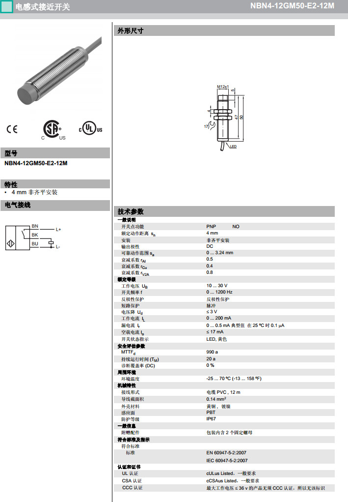 NBN4-12GM50-E2-12M,NBN4-12GM50-E2-5M,NBN4-12GM50-E2-8M感應(yīng)式傳感器