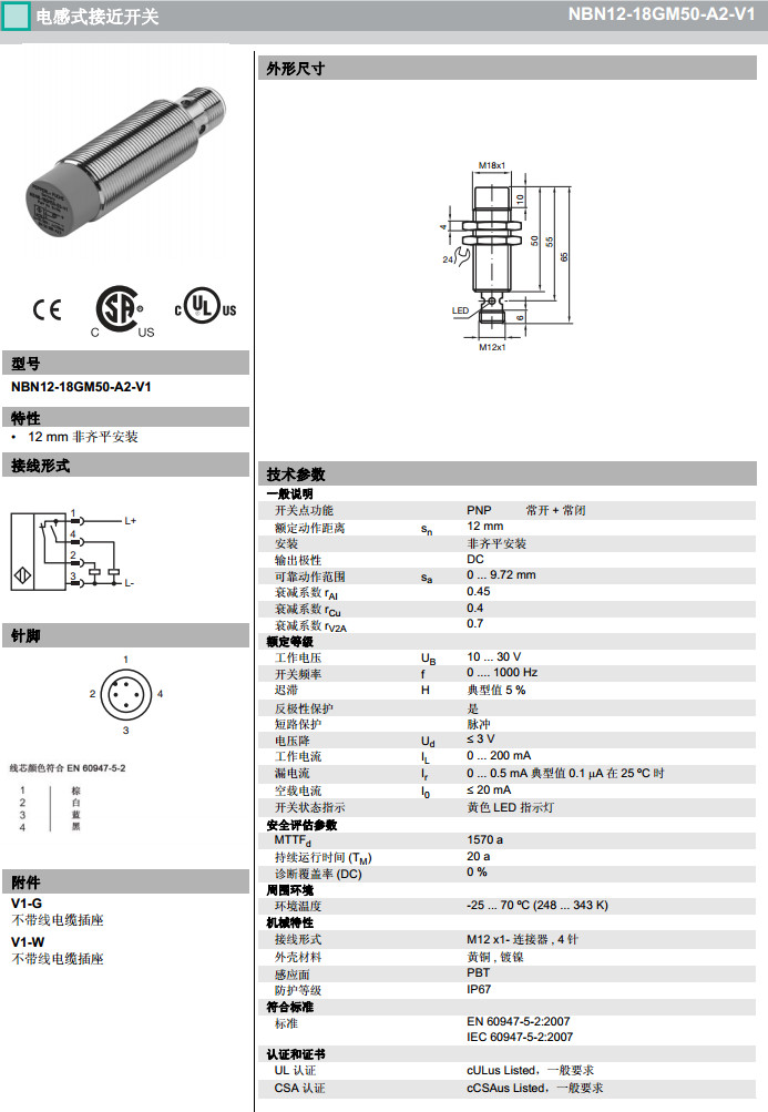 NBN12-18GM50-A2-V1感應式傳感器