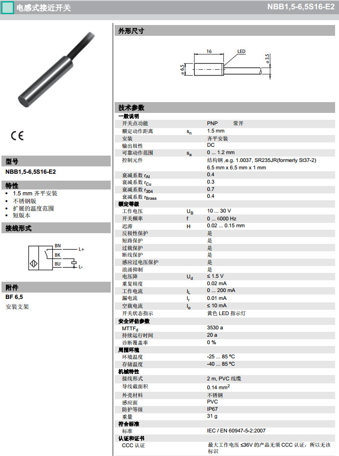NBB1,5-6,5S16-E2,NBB1,5-6,5S35-E2感應式傳感器