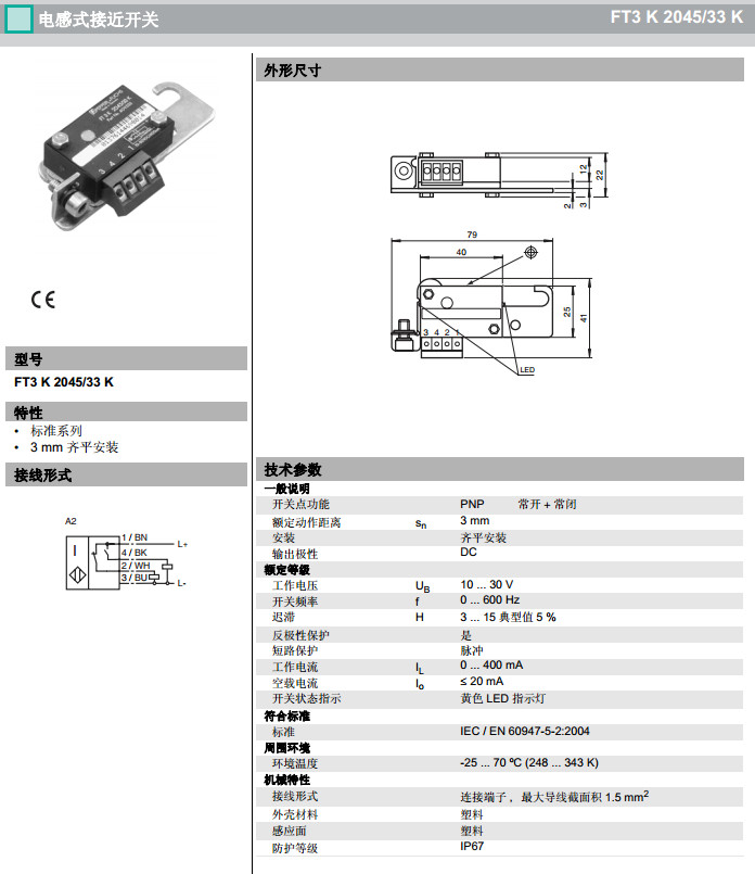 FT3 K 2045/33 K感應(yīng)式傳感器
