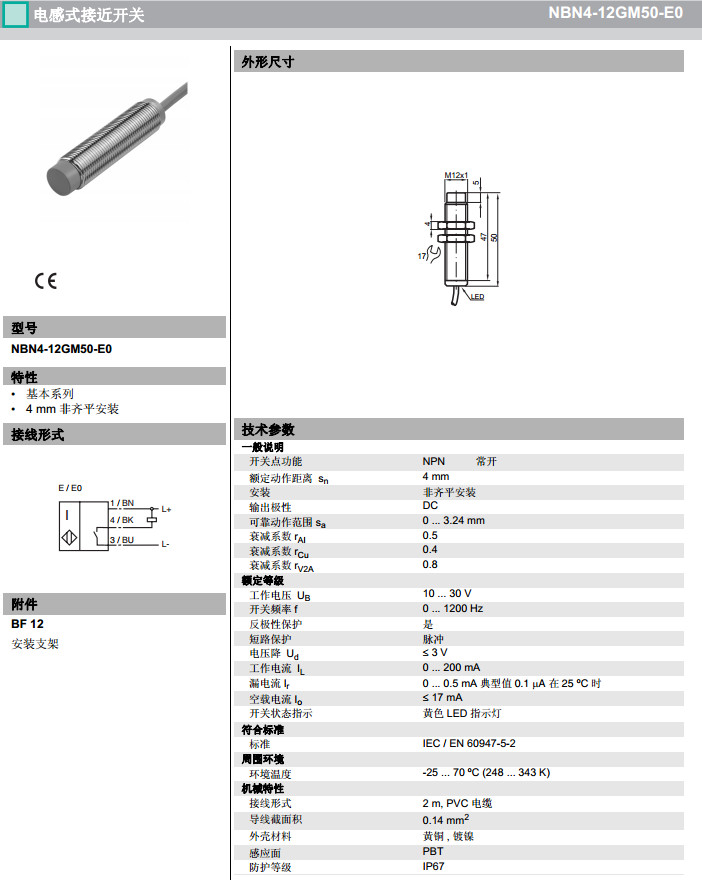 NBN4-12GM50-E0,NBN4-12GM50-E2電感式接近開(kāi)關(guān)