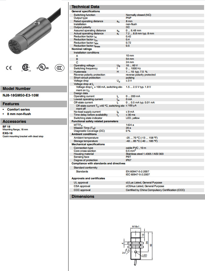 NJ8-18GM50-E3-10M電感式接近開關(guān)