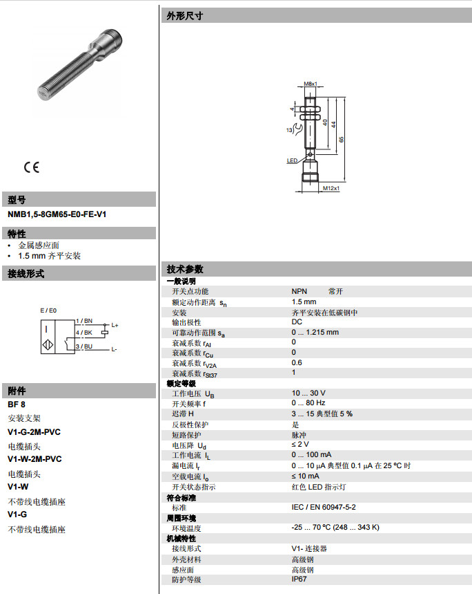 NMB1,5-8GM65-E0-FE-V1電感式接近開關(guān)