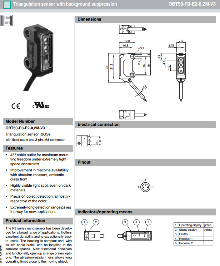 OBT50-R3-E2-0,2M-V3漫反射型傳感器