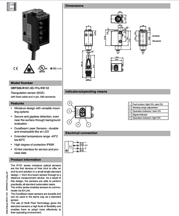 OBT300-R101-IO-1T-L-Y0112,漫反射型傳感器