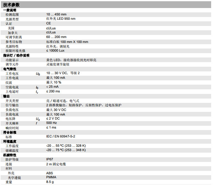 ML17-8-450/115/136漫反射型傳感器