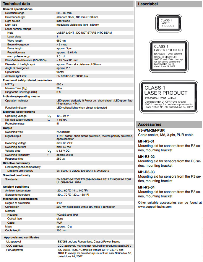 OBT80-R3-E2-0,2M-V3,OBT80-R3-E2-0,2M-V3-L漫反射型傳感器