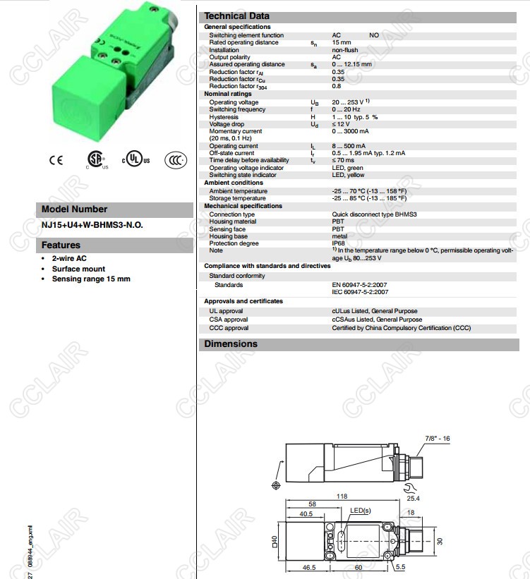 NJ15+U4+W-BHMS3-N.O,電感式接近開關(guān)