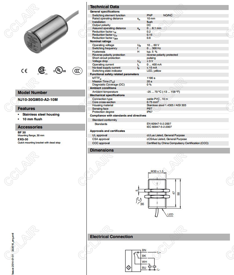 NJ10-30GM50-A2-10M,電感式接近開(kāi)關(guān)