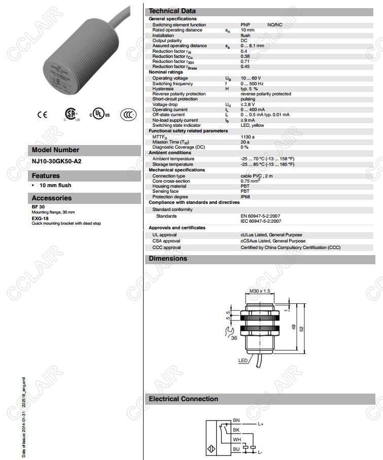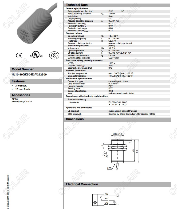 NJ10-30GK50-A2,NJ10-30GK50-E2-Y222509,電感式接近開關