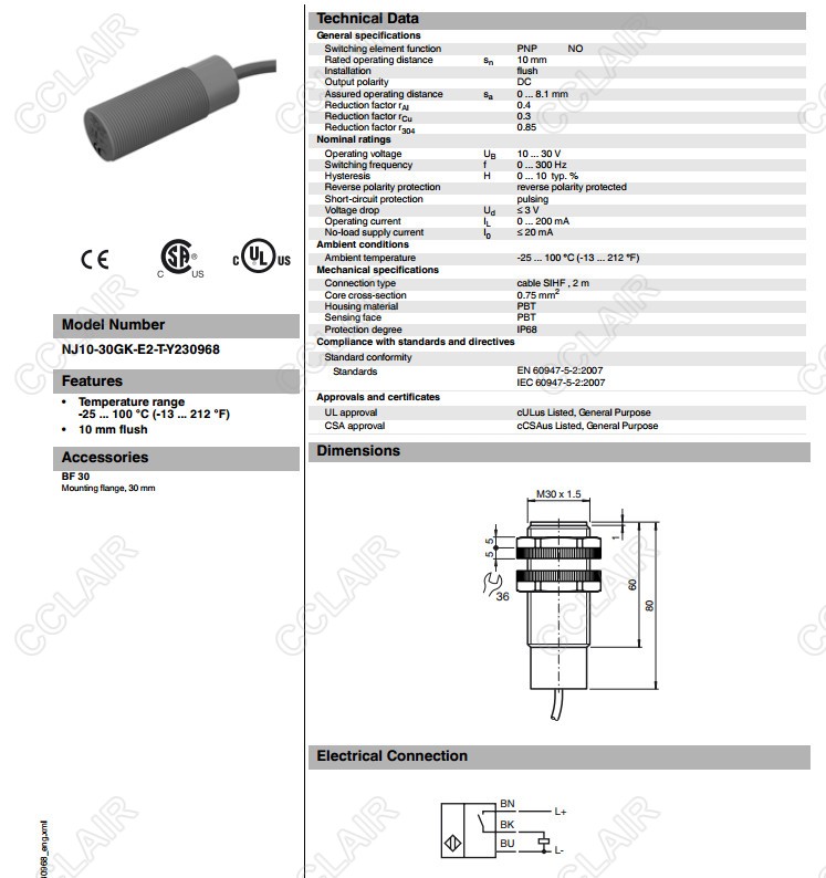 NJ10-30GK-E2-T-Y230968,NJ10-30GK-E2-Y11312,電感式接近開關(guān)