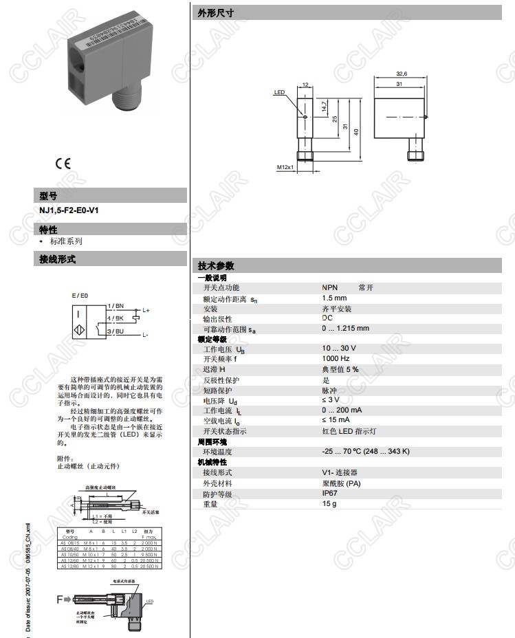 NJ1,5-F2-E0-V1,電感式接近開關(guān)