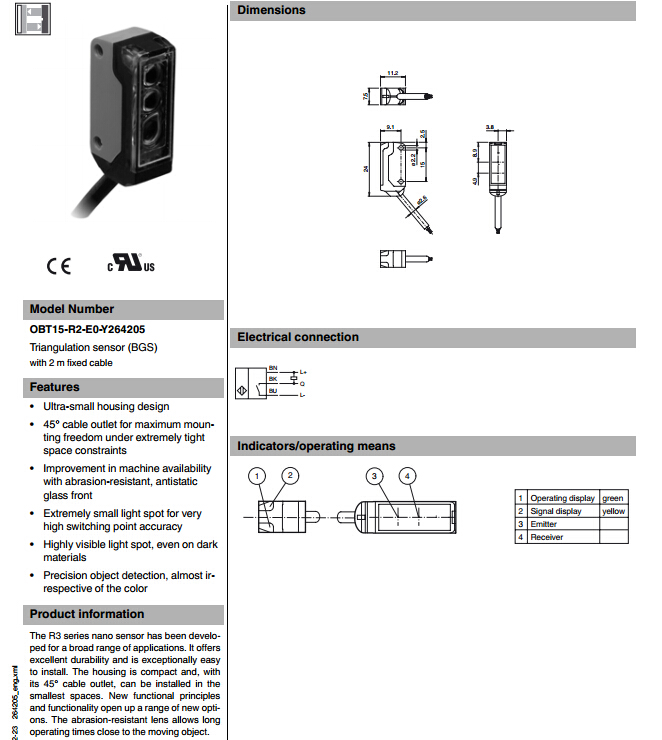 OBT15-R2-E0-Y264205,漫反射型傳感
