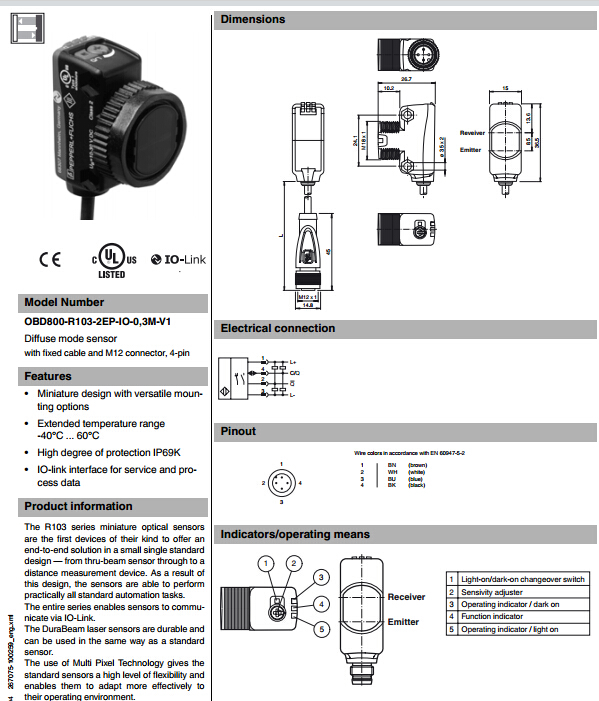 OBD800-R103-2EP-IO-0,3M-V1,漫反射型傳感器