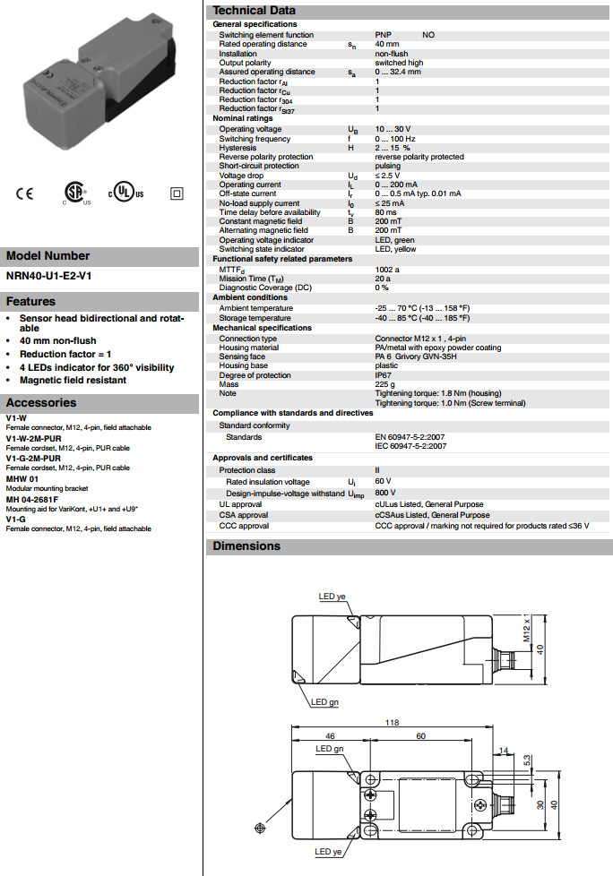 NRN40-U1-E2-V1電感式接近開關(guān)