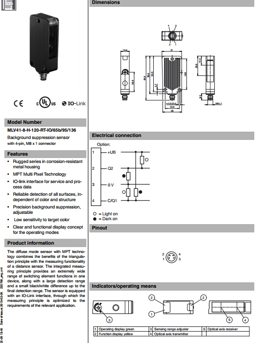 MLV41-8-H-120-RT-IO/65b/95/136,漫反射型傳感器