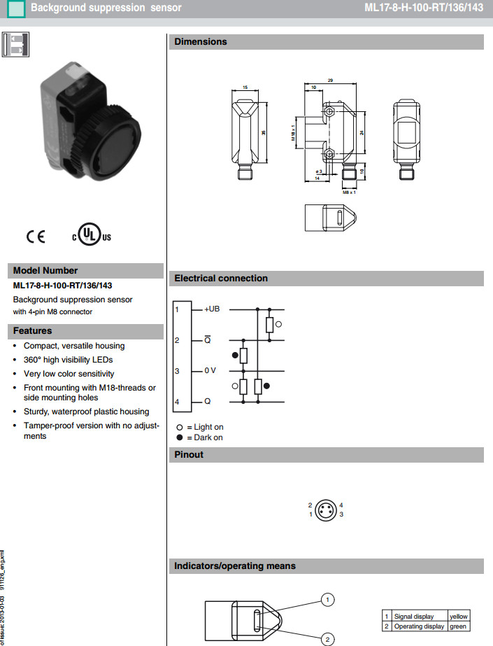 ML17-8-H-100-RT/136/143漫反射型傳感器