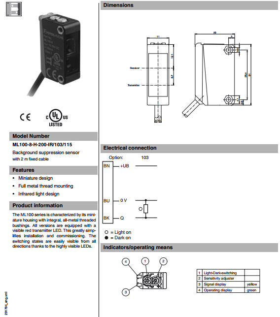 ML100-8-H-200-IR/103/115,漫反射型傳感器