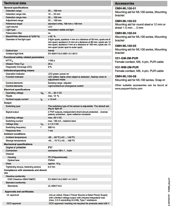 ML100-8-H-100/95/120/162,漫反射型傳感器