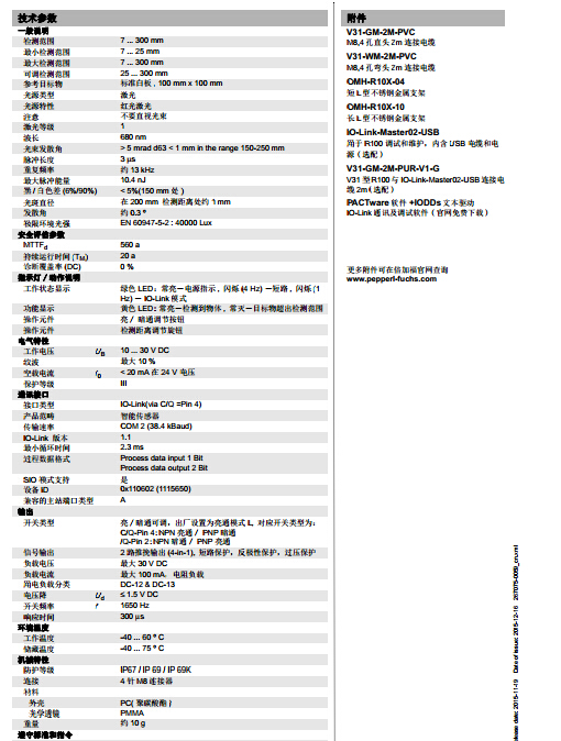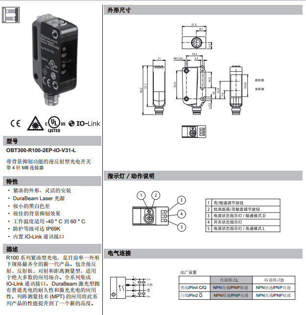 OBT300-R100-2EP-IO-V31-L,漫反射型傳感器