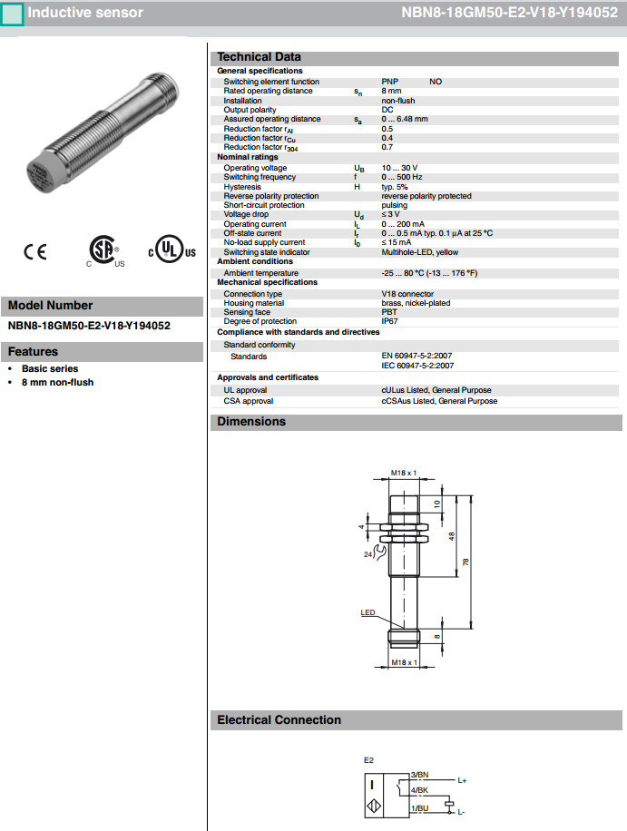 NBN8-18GM50-E2-V18-Y194052感應式傳感器