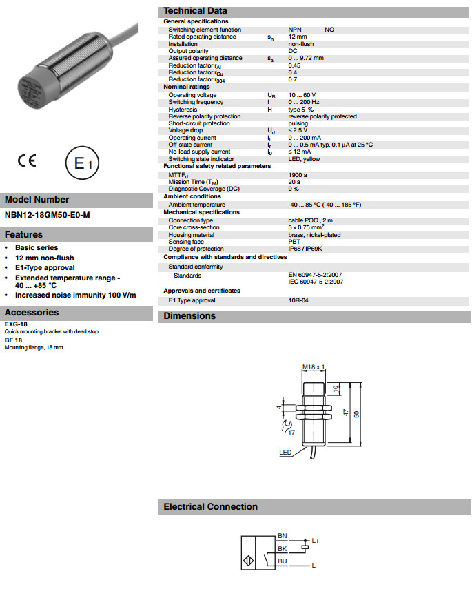 NBN12-18GM50-E0-M電感式接近開關(guān)