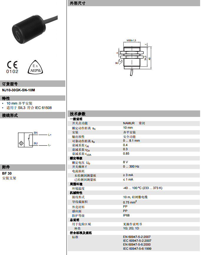 NJ10-30GK-SN-10M電感式接近開(kāi)關(guān)