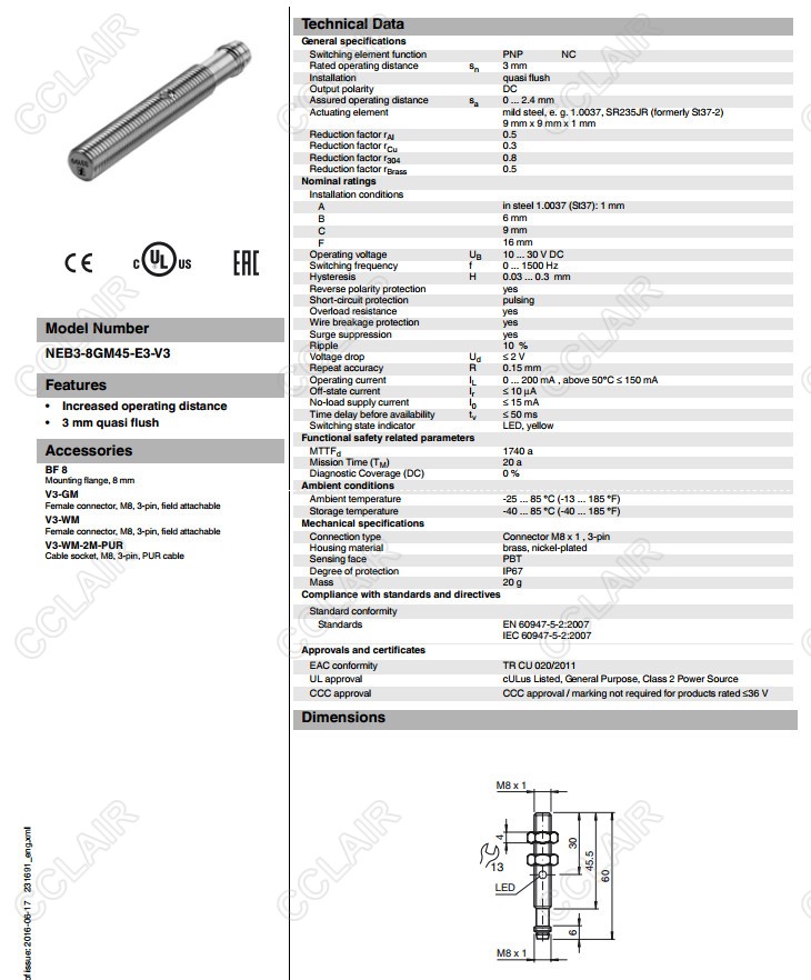 NEB3-8GM45-E3-V3,電感式接近開關(guān)