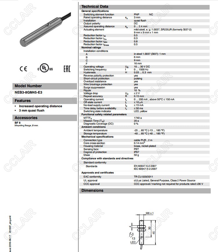 NEB3-8GM45-E3,電感式接近開關(guān)