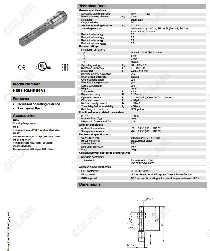 NEB3-8GM45-E0-V1,電感式接近開(kāi)關(guān)