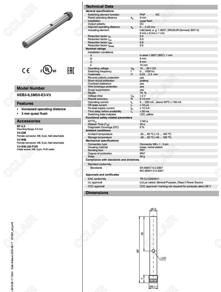 NEB3-6,5M50-E3-V3,電感式接近開關(guān)