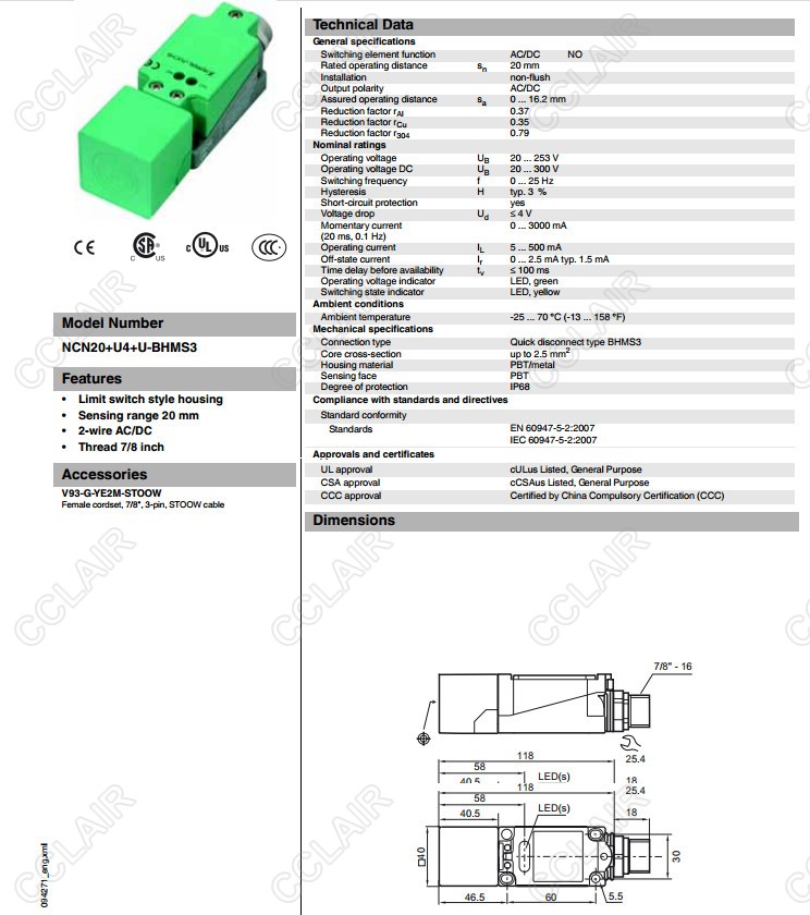 NCN20+U4+U-BHMS3,電感式接近開關(guān)