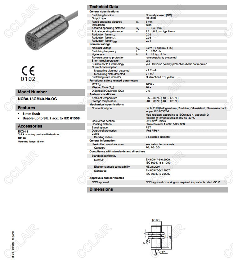 NCB8-18GM40-N0-OG,電感式接近開關(guān)