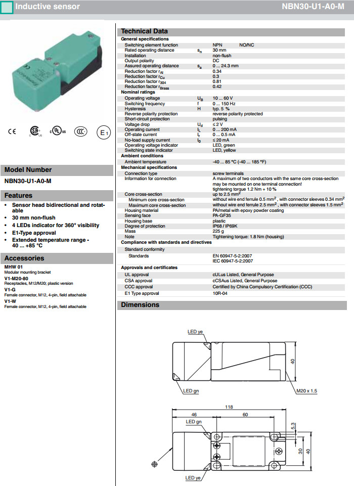 NBN30-U1-A0-M,NBN30-U1-A2-M,NBN30-U1-A2-T,NBN30-U1-A2-T-V1